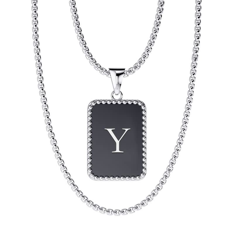 Airrty Initial A-Z Letter Pendant Necklace for Men Women Sterling Silver Plated Letter Necklaces for Men 2.5mm Box Necklace Chain 20 Inch (Y)