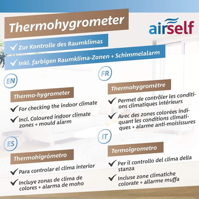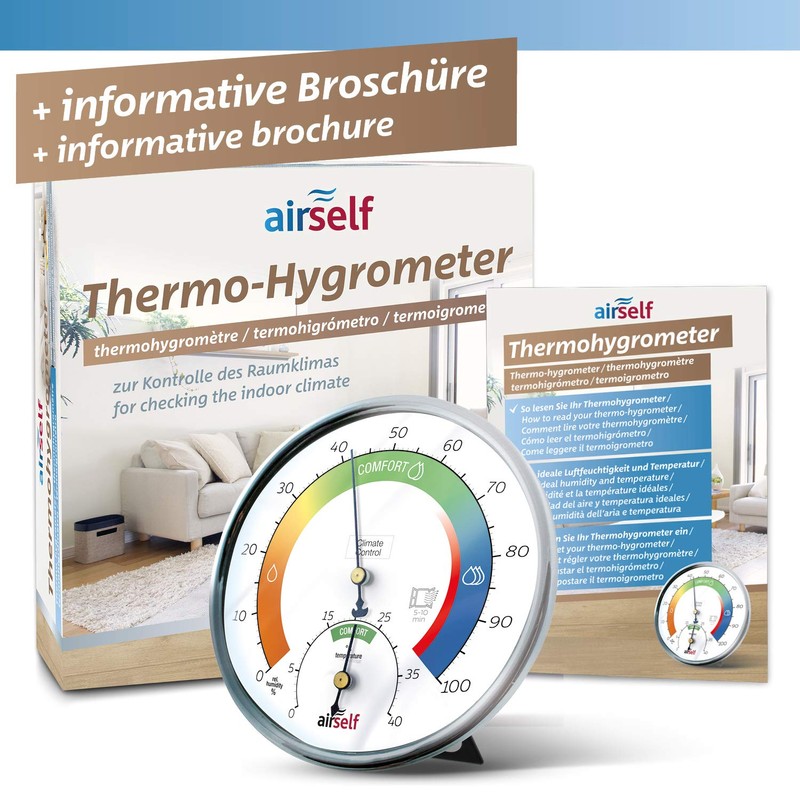 airself Analogue Thermohygrometer for Indoor Use - Room Thermometer and Moisture Meter with Comfort Zone for Practical Room Climate Control
