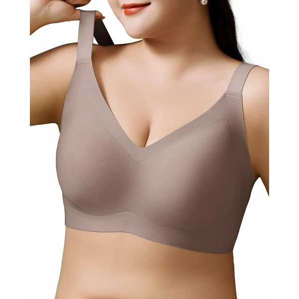 Airsong Minimizer Bras for Women Full Coverage Wireless Plus Size Seamless Bralette with Removable Pads Adjustable Comfort (36D, Coffee)