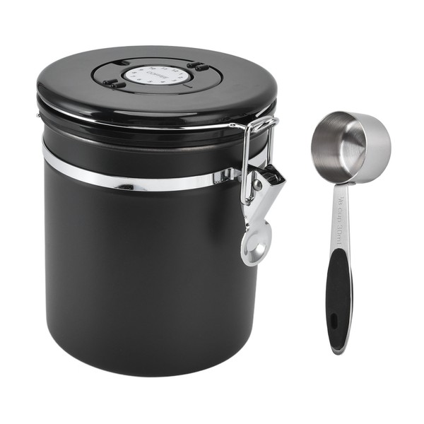 Airtight Coffee Canister Storage Jar Date Tracker CO2 Release Valve Stainless Steel Container Black