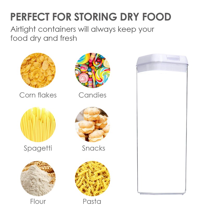 - Air-Tight to keep food dry and fresh----With special sealing mechanism, you can open or close our plastic containers safely by using only two fingers. Simply flip the ring to open or flip the ring down to lock and seal.