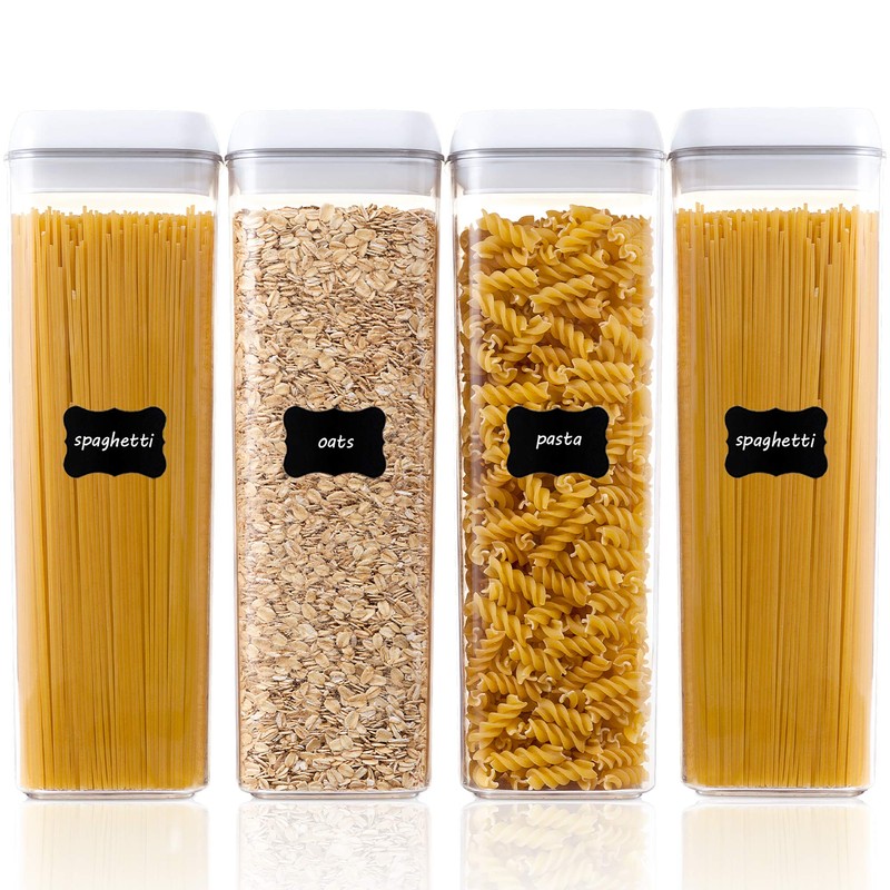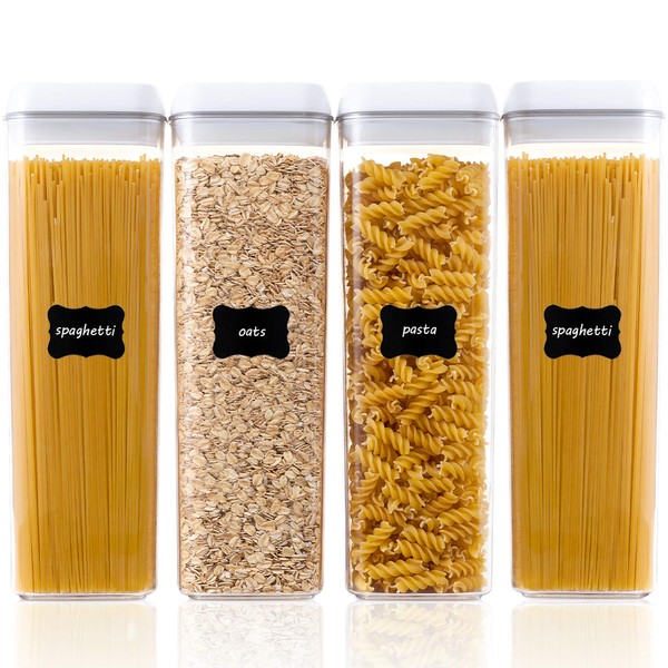 Airtight Food Storage Containers, Vtopmart 4 Pieces BPA Free Plastic Spaghetti Containers with Easy Lock Lids, for Kitchen Pantry Organization and Storage, Include 24 Labels