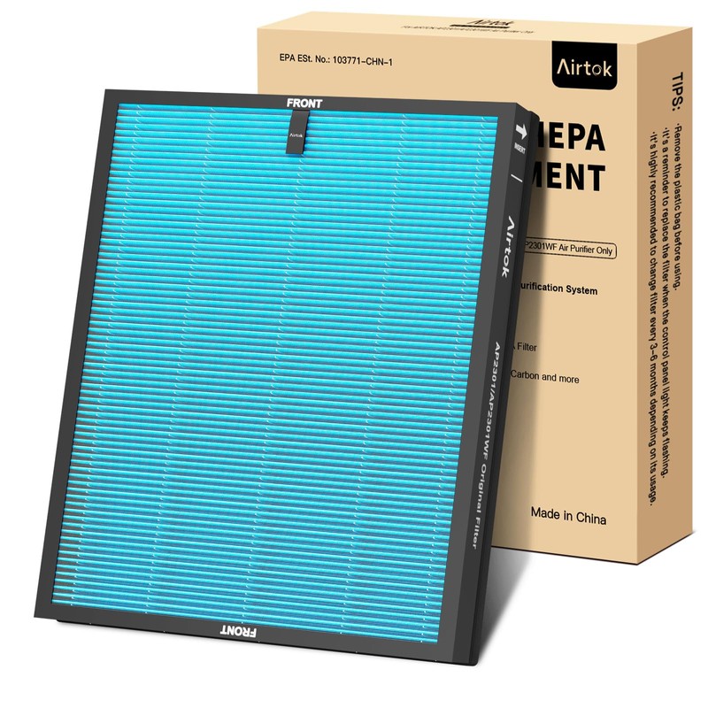 - AIRTOK Authentic Filters: Off-brand filters are inconsistent, unreliable, and may damage the air purifier. It is highly recommended to use this officially designated replacement filter to keep your AP2301 air purifier at its best working efficiency and capacity, breathing good quality air all the time.