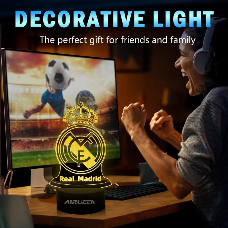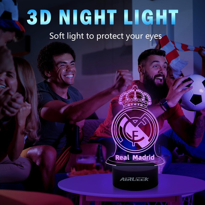 - Madrid gifts for boys: If your child likes football or is a sports fan, then these Madrid gifts for boys must be the best gift idea. This 3D night light for children brings a good night and sleeping atmosphere to the bedroom. This is a special birthday gift, Christmas gift, football gift or a Christmas gift idea for your children, friends and parents.