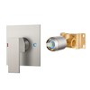 - [Design]:The single function shower handle is easily adjust the water temperature with shower mixer valve and trim kit. Water Use Information: 1.18gpm 4.47L/min.Brushed Nickel finish and brass combination corrosion and rust resistant, shower water mixer single handle shower valve has solid brass shower control valve kit