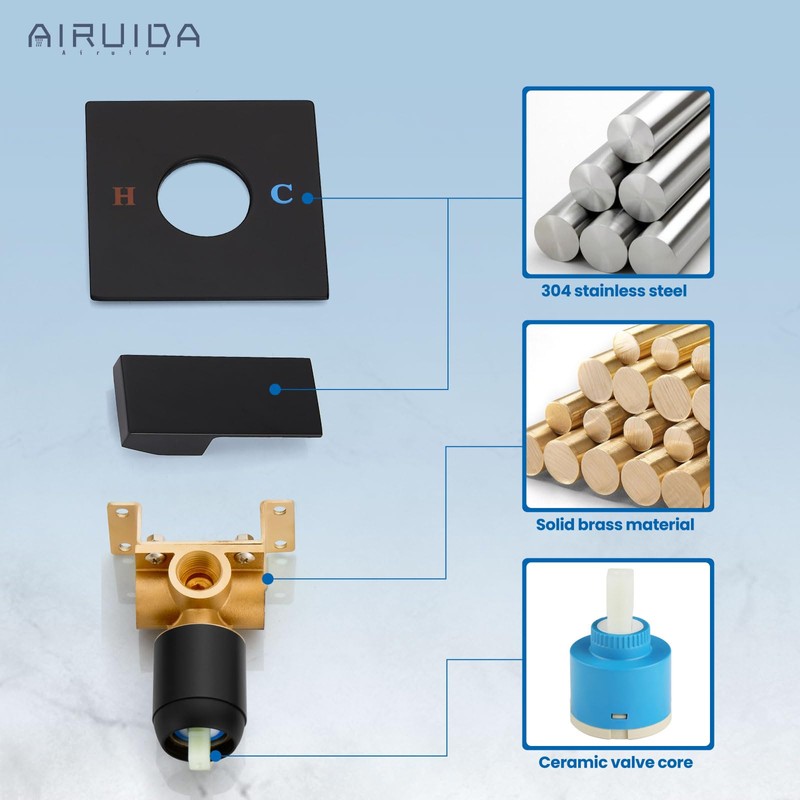 Introducing the Airuida Shower Valve and Trim Kit, a reliable and durability addition to your bathtub and shower. This matte black finish and brass combination is not only corrosion-resistant, but also adds a sophisticated touch to your bathroom decor. Crafted from solid brass, this shower control valve kit ensures exceptional durability and reliability.