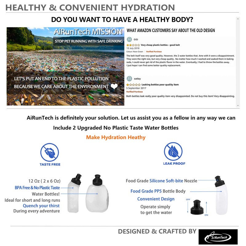 AiRunTech Running Belt with Water Bottles No Bounce Hydration Belts Can be Cut to Size Design Strap for Runners(2 * 6 OZ Bottles)