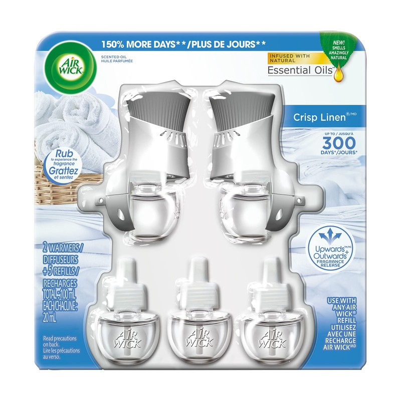 Airwick Airwick Scented Oil Crisp Linen, Infused with natural Essential Oils, 2 Warmers/Diffuseurs+5 Refills/Recharges Total 100ml.