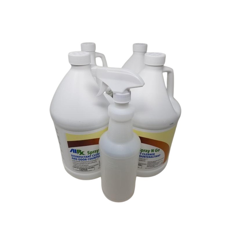 AIRX SPRAY N GO DISINFECTANT CLEANER AND ODOR COUNTERACTANT - 4 Gallon Case + Spray Bottle