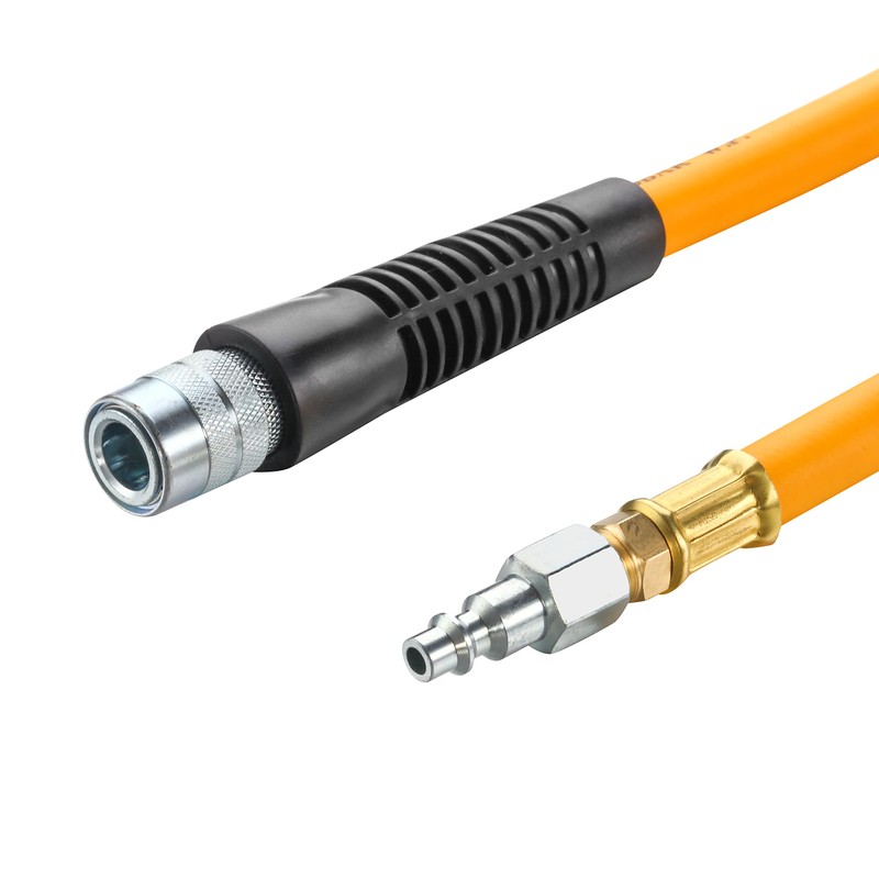- [Air Hose Specification]: 50+5FT Light weight flexibility Hybird Polymer Hose could be used in toughest condition(-40°F to 176°F). No memory Premium Commercial hose material feature could eliminated kinks problem. Resistant against: Water, Oil, Heat, and Weather. Up to 300PSI.