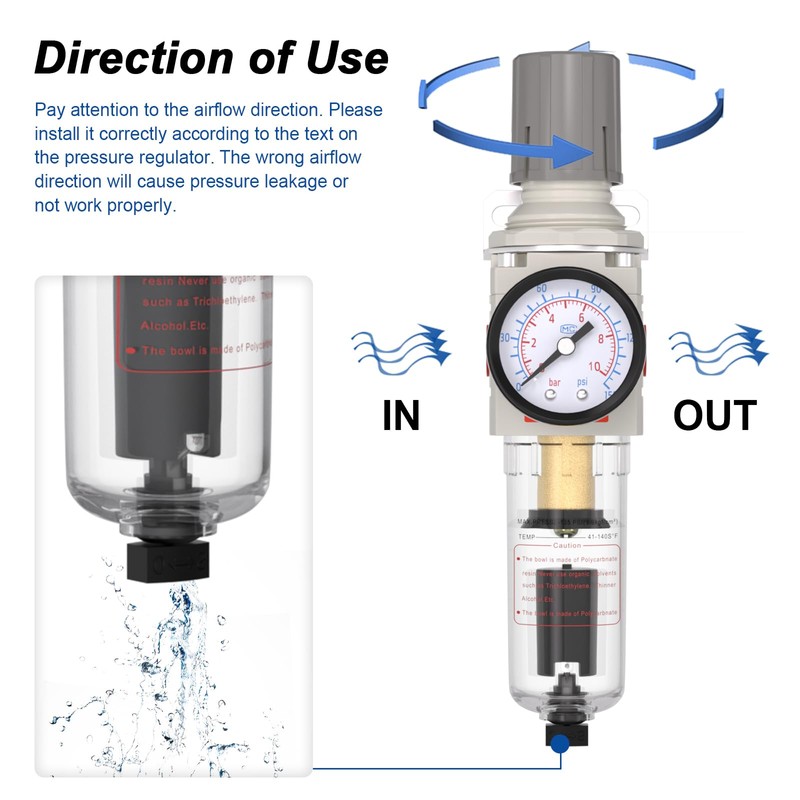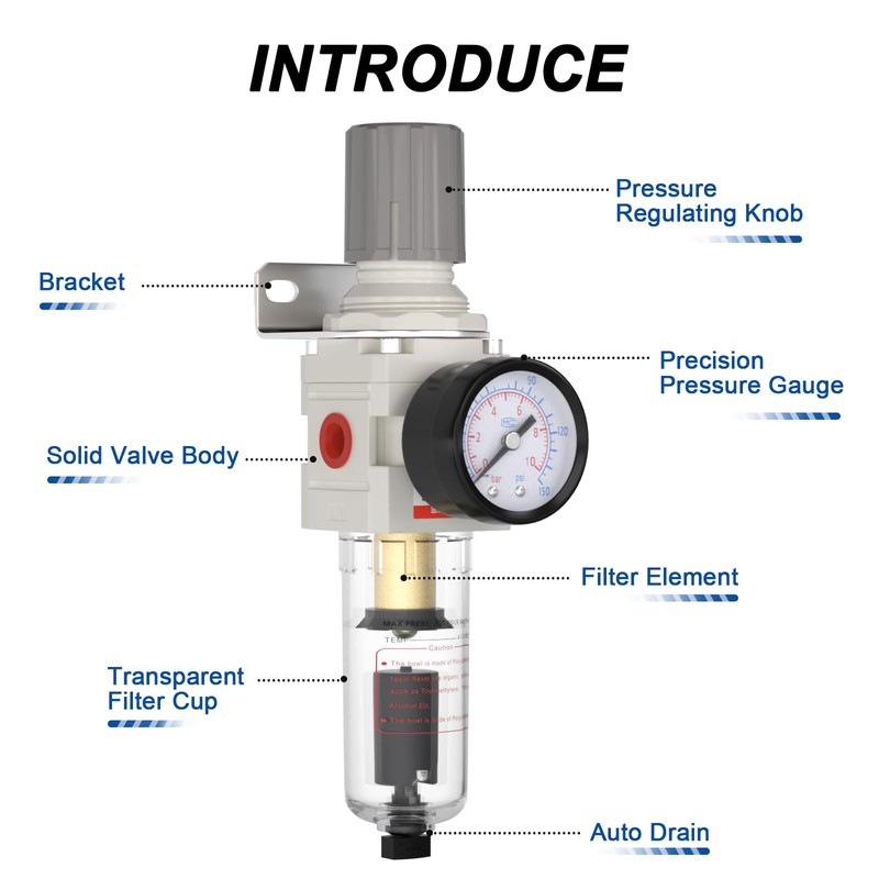- Standard Size:1/4” NPT Air Pressure Regulator