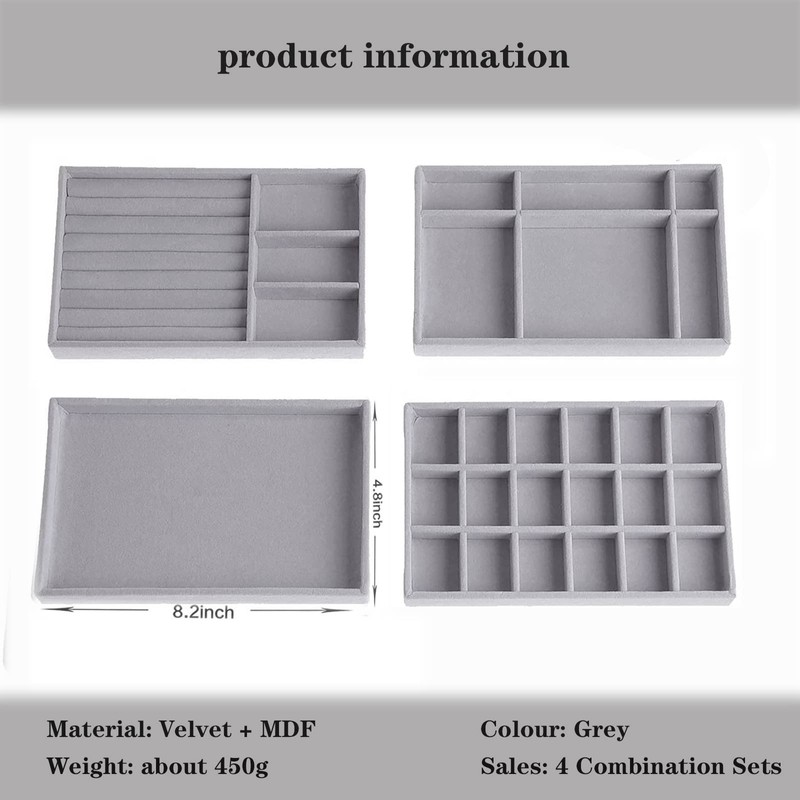 - 【Quality Material】The interior of thesejewelry trays is made of MDF, which is sturdy and durable. The area where the jewelry is stored is wrapped in fine flannel to protect your jewelry.