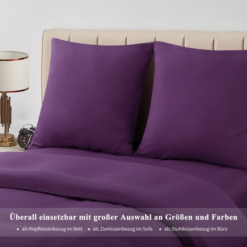 Aisbo Pillowcase, 80 x 80 cm, Set of 2, Purple, with Soft Microfibre Zip