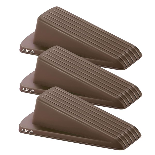 AiScrofa Door Stoppers for Bottom on Floor, Gaps, Rubber Wedge, Sturdy Stackable Stops for Carpet, Heavy Duty (3 Pack) (Brown)