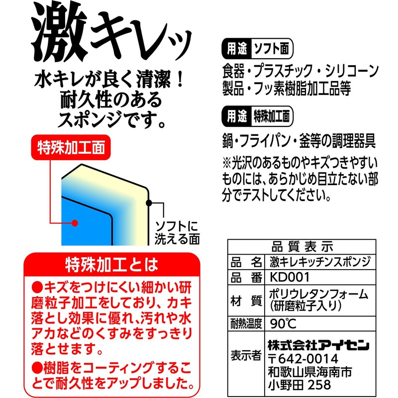 Aisen AS180757 Super Clean Kitchen Sponge, Multi, 1.4 x 2.8 x 4.3 inches (3.5 x 7 x 11 cm)