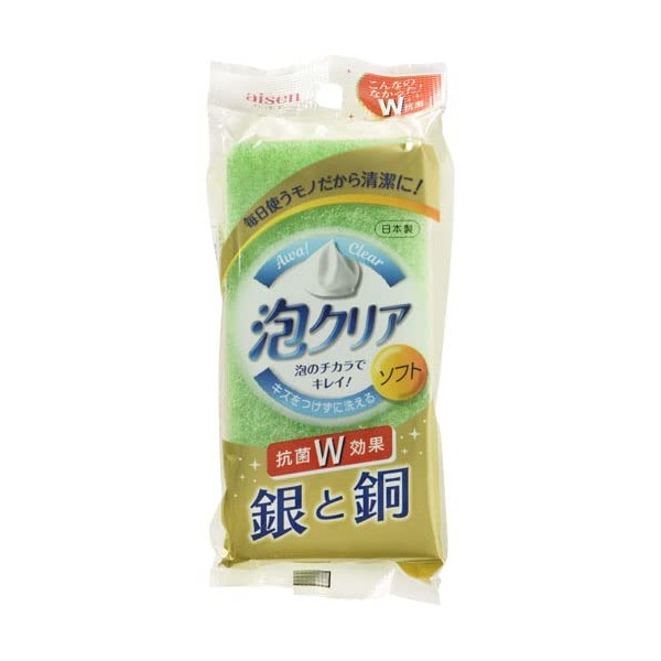 Aisen Silver and Copper Antibacterial W Effect Kitchen Sponge, Clean with the Power of Foam! Foam Clear, Soft Sponge, Yellow, Green
