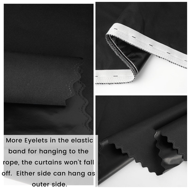 - Package includes: 2 pieces of curtain cloths, 16 matched hanging hooks, 2pcs 2.46m/ 94in long rope. 2 panels can cover front and two sides.