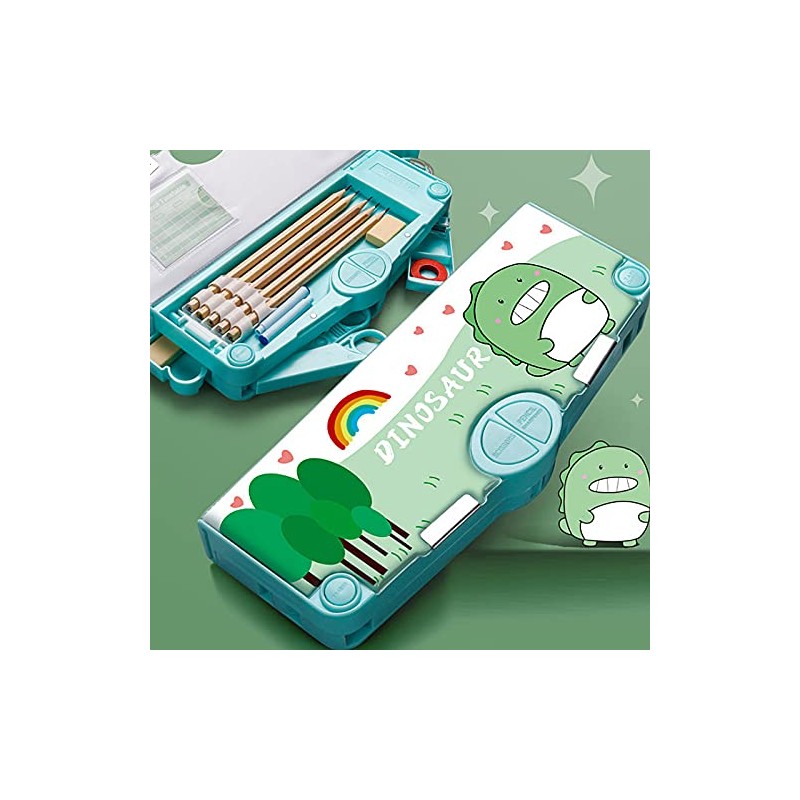The pencil box with multiple compartments, which keeps desks neat and organized and it is compact to fit in the backpacks.