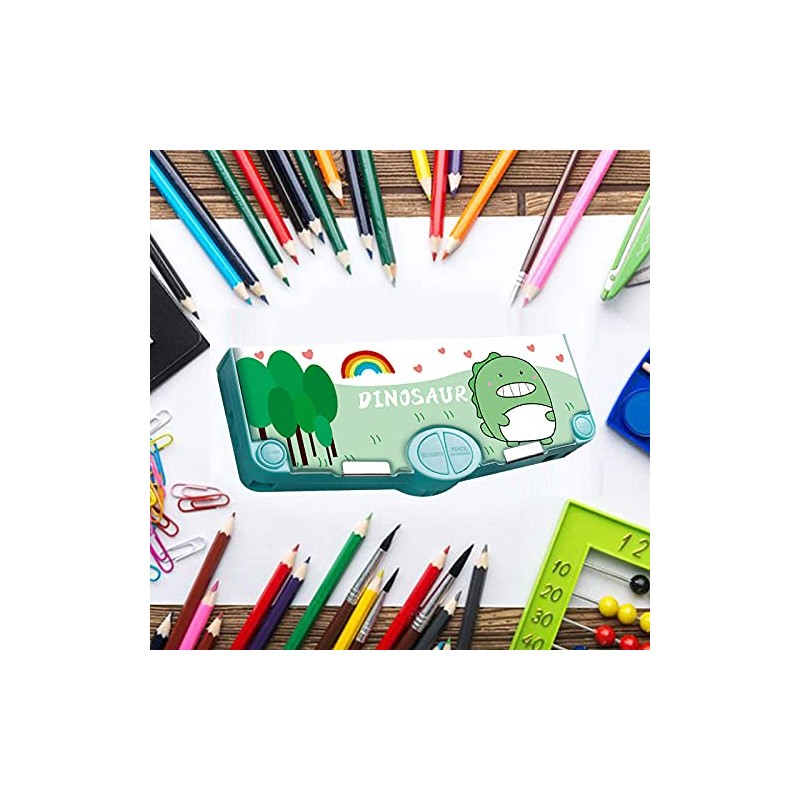 The pencil box with multiple compartments, which keeps desks neat and organized and it is compact to fit in the backpacks.