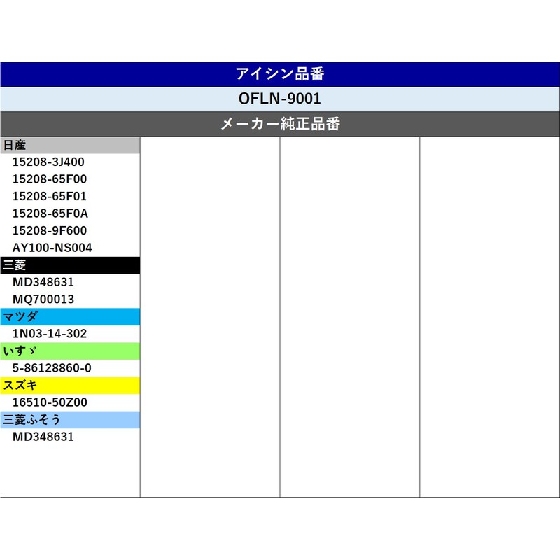 AISIN OFLN-9001 Car Oil Filter, Oil Element, Genuine Compatible Part Number: AY400-NS004, Others, Notebook, AD Serena, Etc.