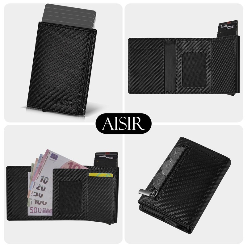 AISIR Men's Wallet, Mini Wallet for Men and Women with RFID, 8 Compartments for Credit Cards, Slim Wallet with Coin Compartment, Card Holder for Men (Carbon Black), carbon black, Modern