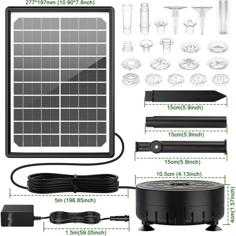 Solar outdoor fountain is suitable for garden, bird bath, water feature, waterfall, stream, pond, and other DIY water circulation