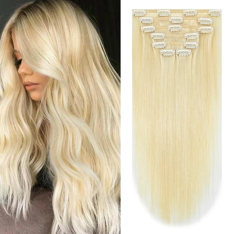 Aison Platinum Blonde Clip in Hair Extensions Real Human Hair 115G/7Pcs 16clips Real Human Hair Extensions for Women(22 Inch #Platinum Blonde)