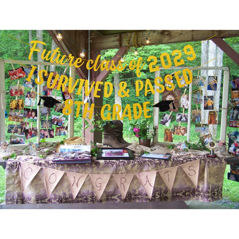 Aisosiks 8TH Grade Graduation Decorations 2025, Future Class of 2029 I Survived & Passed 8TH Grade Graduation Banner Party Supplies, Middle School Grad Party Decorations (Gold)