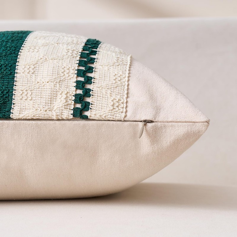 - HIGH QUALITY DESIGN The bohemian style pillow cover features one-sided lace processing in contrasting colors. Unique modern decoration style in country style, which gives a simple and rustic feeling and surprises your family or friends. Suitable for the sofa in the living room or bedroom.