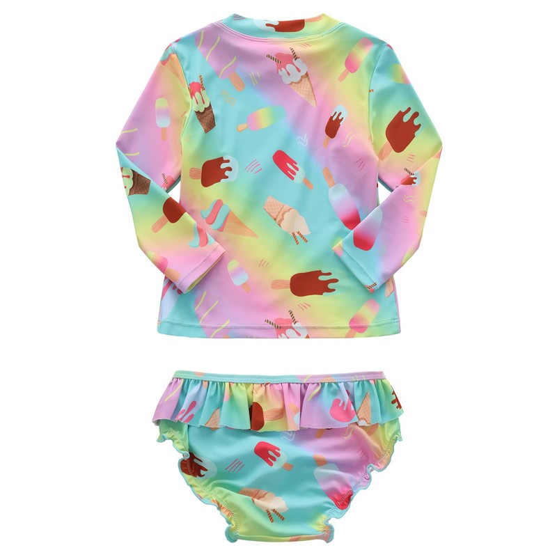 Aisyee Baby Girls Rash Guard Swimsuits Set for Girls Long Sleeve Bathing Suits with Bikini Bottom Two Piece Swim Set Ice Cream Colorful 18-24 Months