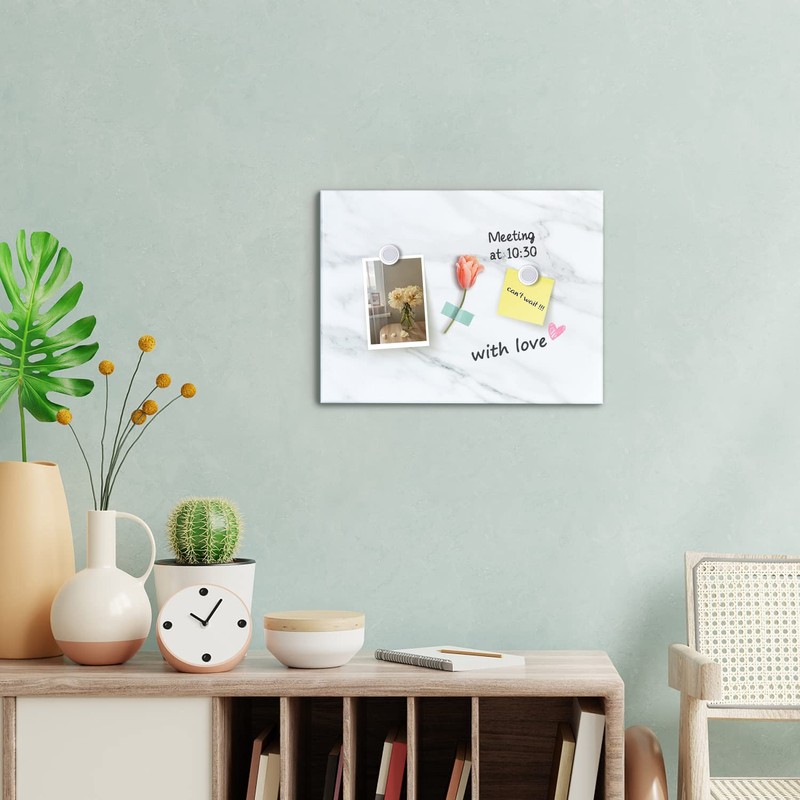 - 【CREATIVE DECORATION】The premium magnetic dry erase board with printed graphics in size 16x12 inches (40x30 cm) will serve as a decoration and unconventional ornament in your home. The dry erase surface features a chic marble print that is highly durable, and duals as a bulletin board with 2 magnets included. (Marker is NOT included)
