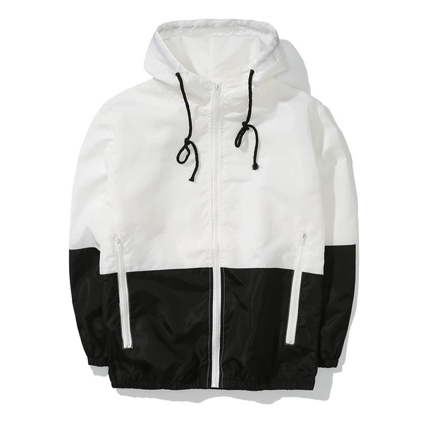 AITFINEISM Men's Lightweight Windbreaker Jacket Casual Zip Up Jackets With Hooded (X-Large, White-2)