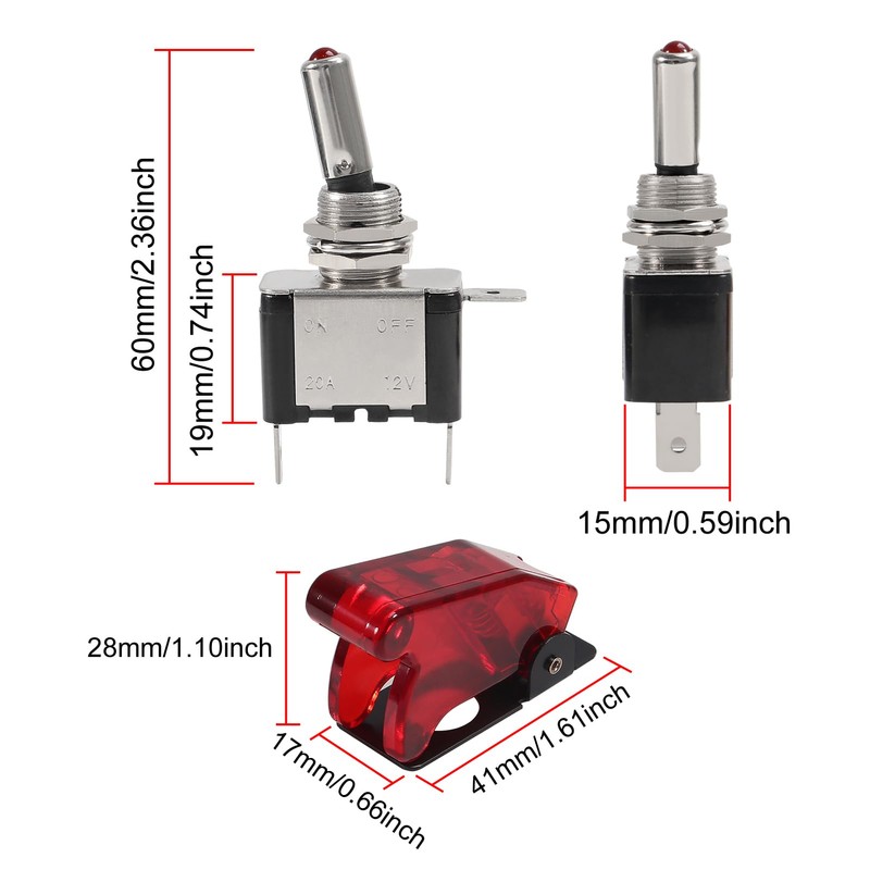- Rating: 12V-20A/3 Pole;Mounting hole diameter: 12mm;Body size: 28mm X 16mm X 69mm/1.1"x0.6"x2.7"(L*W*H);Suitable for almost any motorized vehicle such as Marine, Boat, Motorcycle, Racing Car, Automotive, RV, ATV, UTV, Truck, Golf Cart, Airplane.