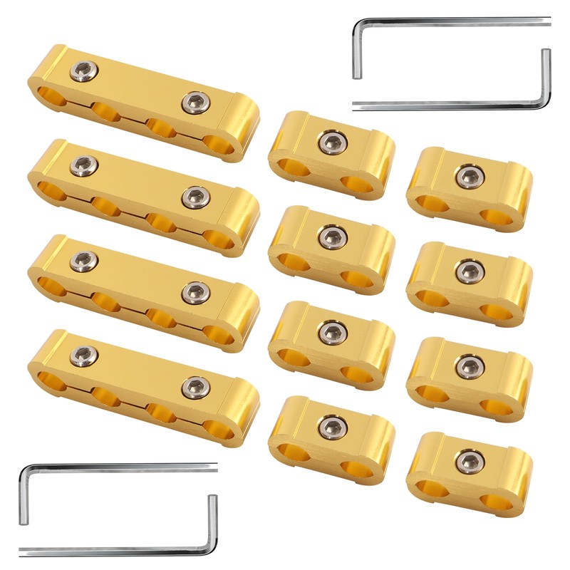 Aitruman Spark Plug Wire Separator Divider Kit for 8mm 9mm 10mm Wire,Fixed and Organized The Engine Wires-Gold 12PCS