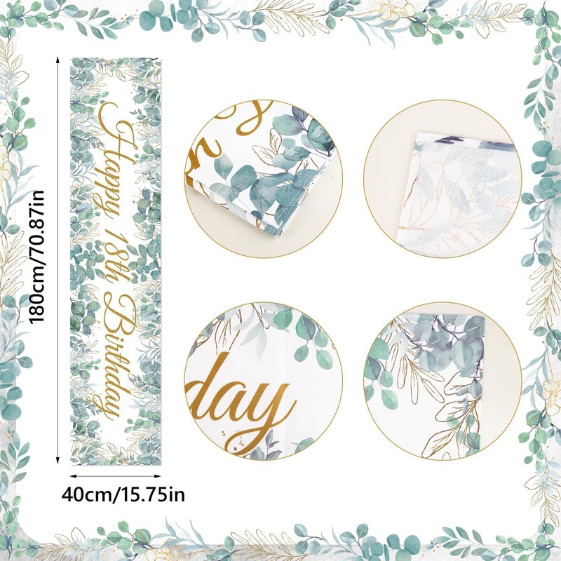 This 40 x 180 cm tablecloth made of high quality durable 100% polyester protects your table from hot plates, scratches and spills. This table runner is perfect for outdoor gatherings and adds a touch of elegance to any setting. This table flag is not only ideal for 18th Birthdays, but also easy to clean - simply machine wash and lay flat to dry so it looks fresh and new after each wash. With vibrant colors and unique patterns, our eucalyptus leaf table runner offers creative and distinctive ideas to upgrade your home decor. Upgrade your space with this eye-catching piece that offers both style and functionality. Upgrade your table decoration with our table runner with eucalyptus leaves and make your 18th Birthday party really unforgettable.