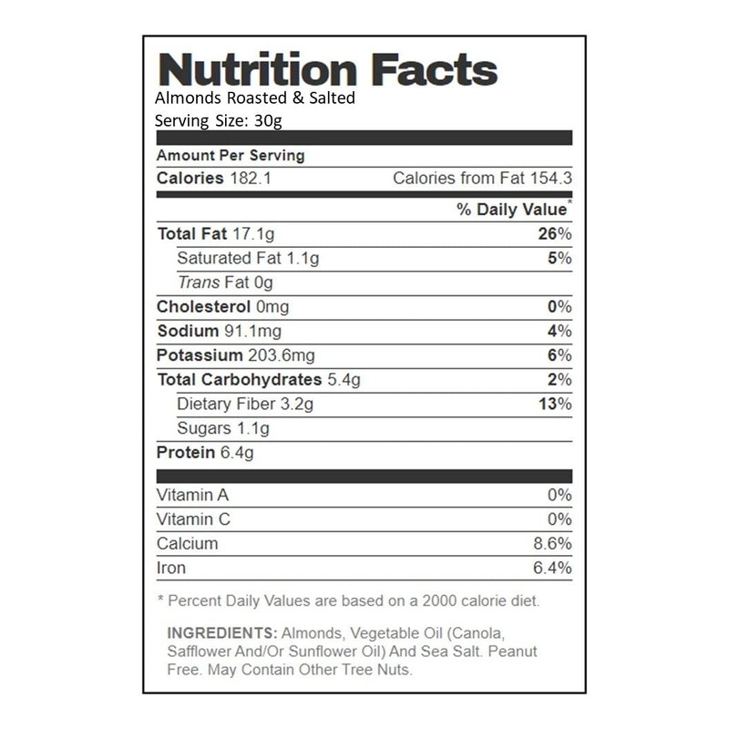 • Roasted & Salted Almonds contain a subtle buttery flavor and satisfying crunch.