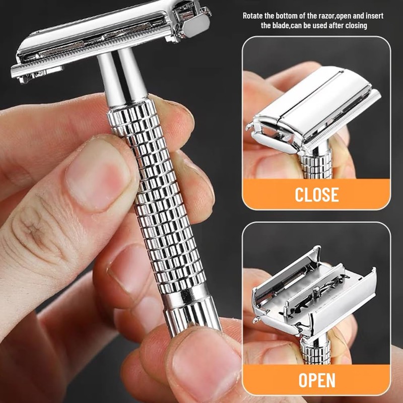 Aiweijia Double Edge Safety Razor Reusable Manual Stainless Steel Shaver Rust-proof Shaving for Men Wet Shaving Barber Beard