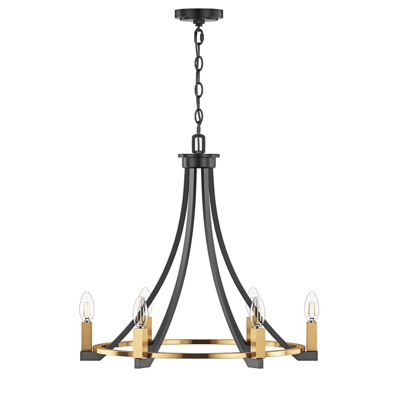 - 【Wagon Wheel Chandelier】This round chandelier has a rustic and modern look. The light sits atop a frame inspired by a wagon wheel. The gold and black color combination is more eye-catching than the simplicity of the whole light being black, perfect for your any space in your home
