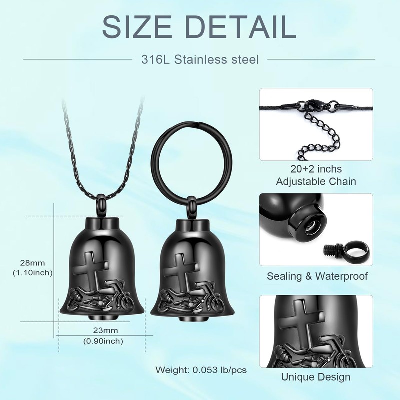 AIWENXI Bell Urns Necklace Cross Motorcycle Cremation Keychain Urns Keychain Keepsakes Memorial Ash Pendant Jewelry
