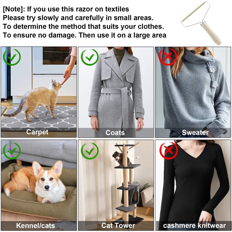 - Note: If you use this lint razor on textiles, please try it slowly and carefully on a small area to ensure that it is not damaged, and then use it on a large area.