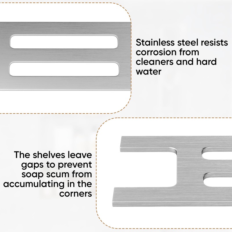 - Premium Quality Material: Stainless steel construction with a brushed finish, will not rust or corrode, strong and sturdy, can withstand corrosion from cleaners and hard water, making it suitable for the humid environment of a shower