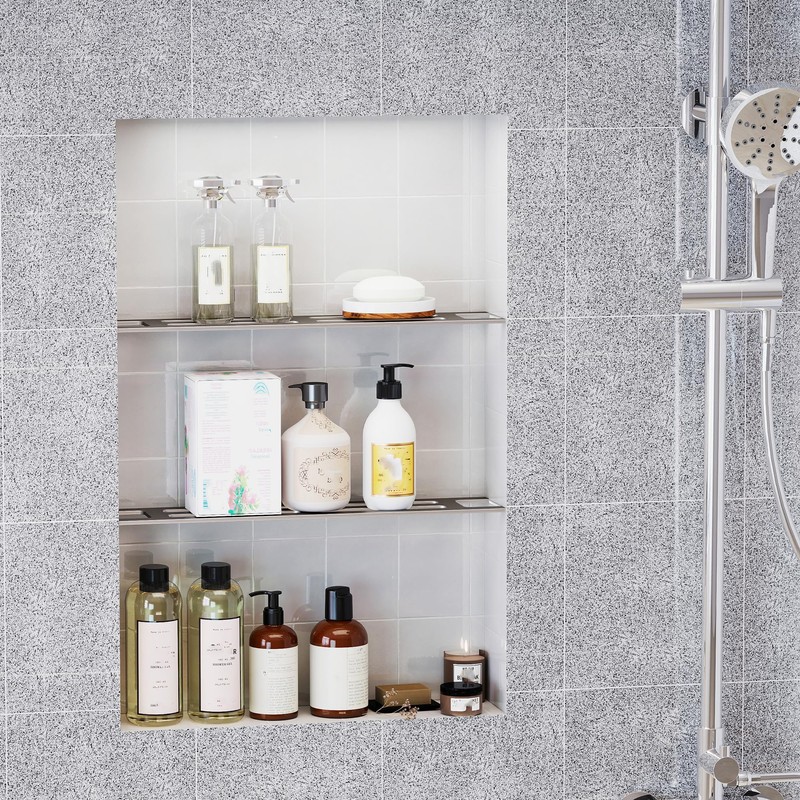 Tile shower niche shelves are widely used in shower rooms, bathrooms, kitchens, and other tiled walls, providing stylish and practical storage solutions