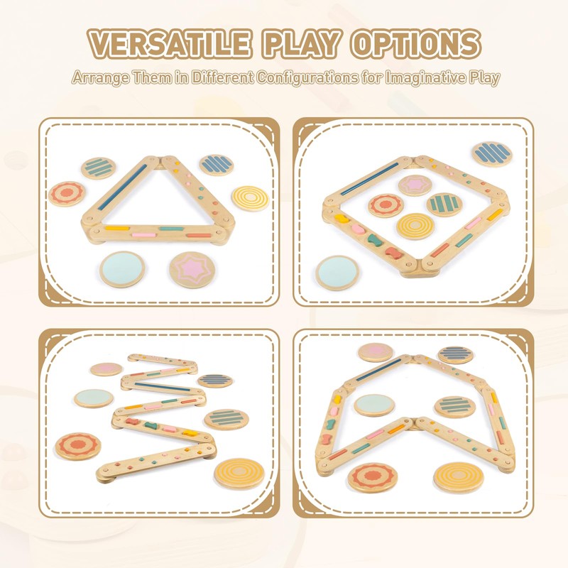 - SPARKING CREATIVITY: Toddler balance beam with stepping stones can be arranged in various configurations. Featuring a sleek side and vibrant raised modules, our balance beam inspires exploration of various walking styles and postures, nurturing independent play and imaginative expression