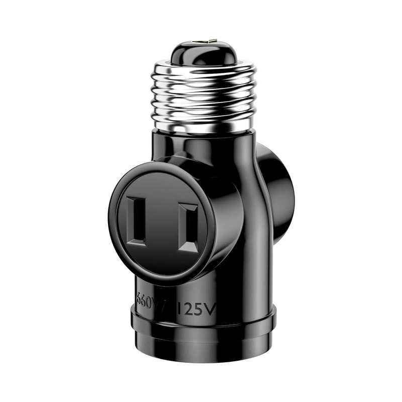 Aiwode E26 Base 1 Light Dual Socket E26 Socket + 2 Outlet E26 Conversion Adapter Conversion Socket Easy Installation, Black, 1 Pack