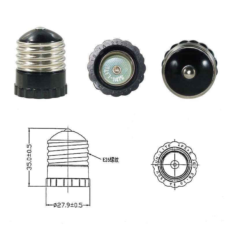 - 1. E26 to E17 Base Adapter:Max Usable Bulb: Up to 60W, 3 Pack, Color: Black ; Size: 35mm H x 27.9mm W ; Material: Bakelite + Bronze ; Weight: 16.6g/1 ; Compatible Load: 1A/250V
