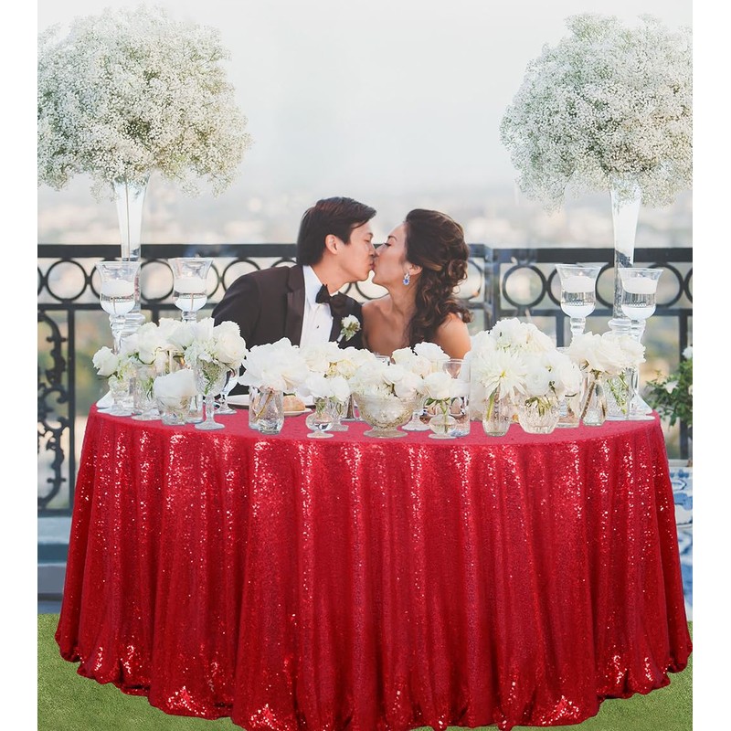 - Complete Party Decor: 1PC red round sequin tablecloth, perfect for adding a touch of elegance and sparkle to any event.