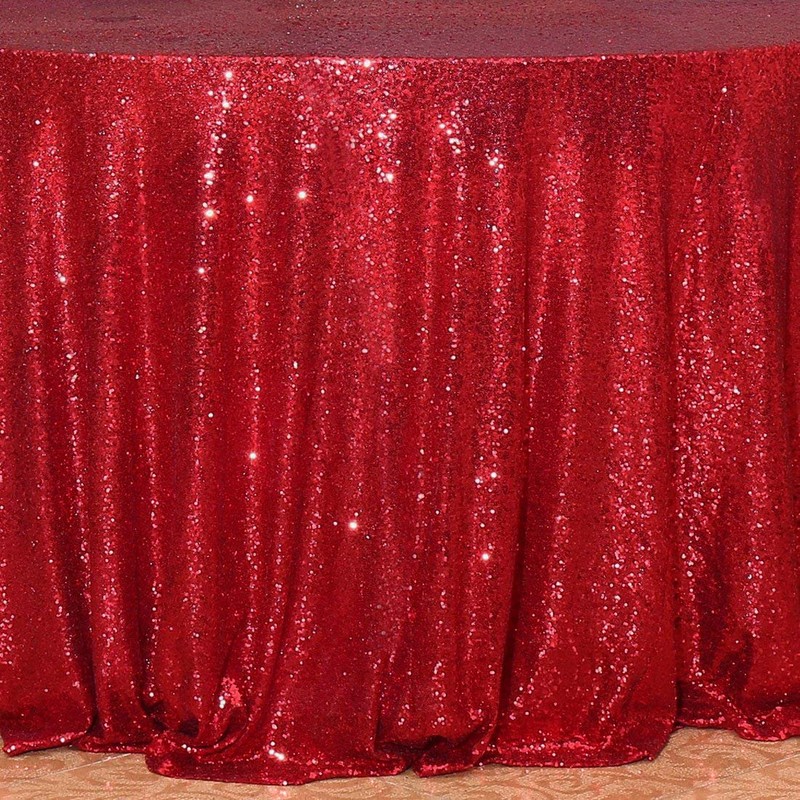 AIXHN Eye-Catching Red 120" Sequin Tablecloth | Sparkling Round Table Cover for Parties & Events | Wedding Table Cloths