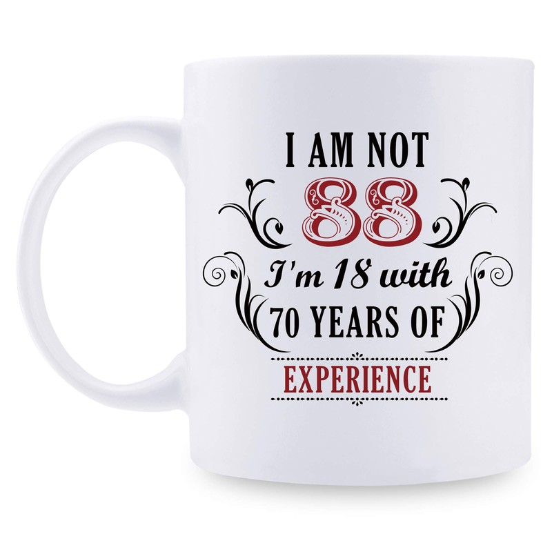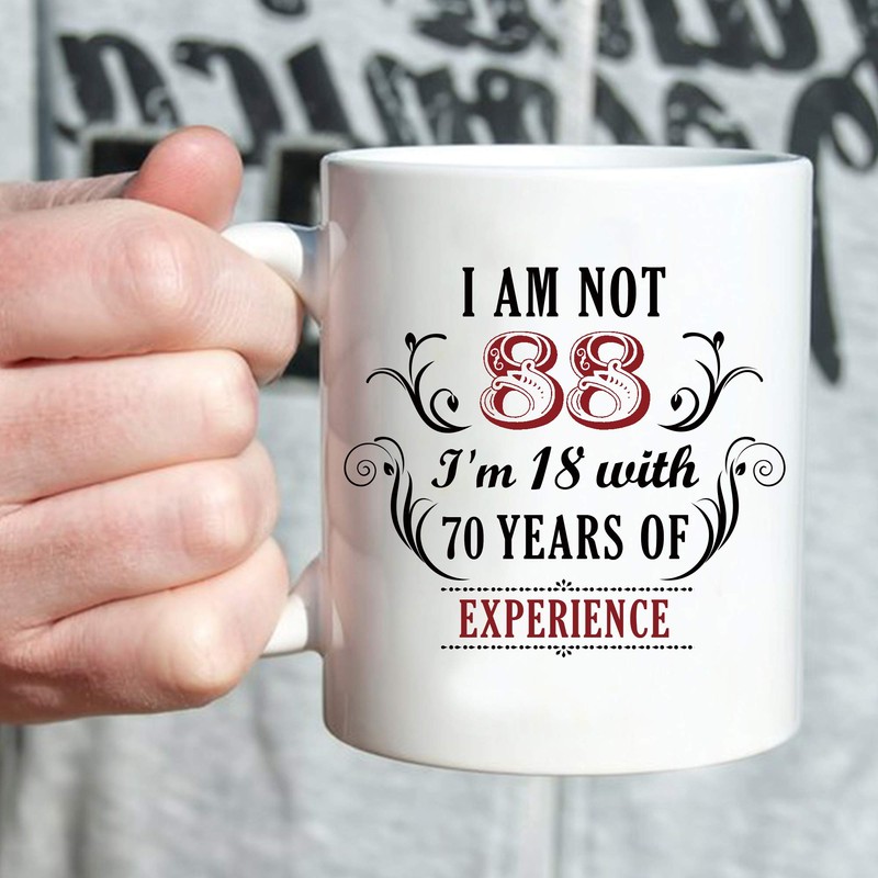aiyaya 88th Birthday Gifts for Women Men - I'm Not 88 I'm 18 with 70 Years of Experience Mug - 88 Year Old Present Ideas for Mom, Dad, Wife, Sisters, Grandma, Grandpa, Friends, Coworkers - 11 oz