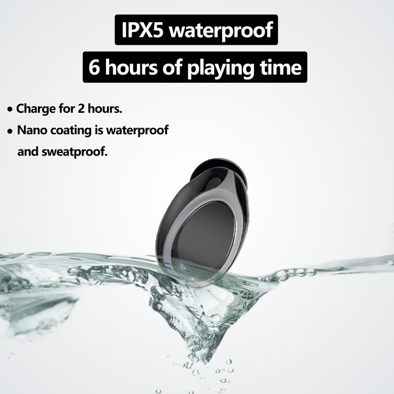- 6 hours of playtime: 2 hours of charging mini earbuds wireless Bluetooth up to 6 hours of music and talk time (depending on volume) are available, enough to keep you entertained with music and calls. IPX5 Waterproof – The nano coating gives it a high level of water and sweat resistance, making it perfect for running and sweating in all sports.