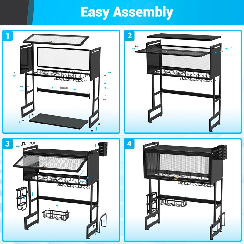 - 【Easy Assembly】Read the detailed step-by-step installation instructions, this over the sink dish drainer drying rack can be easily assembled.